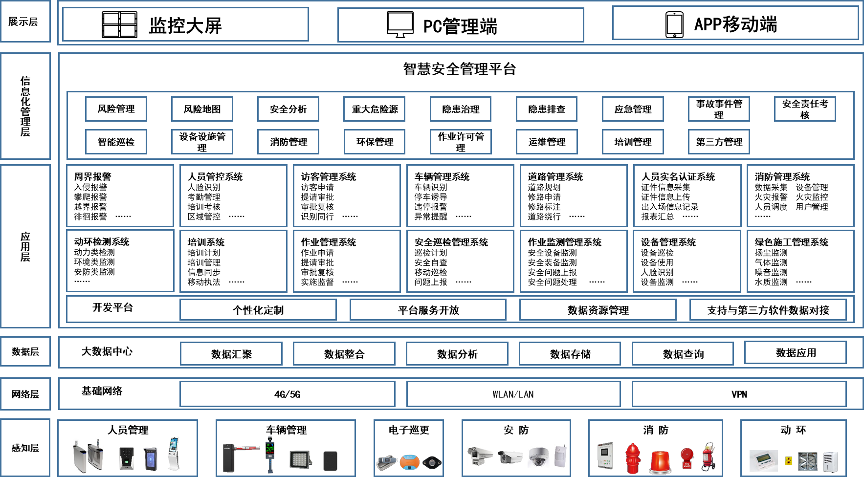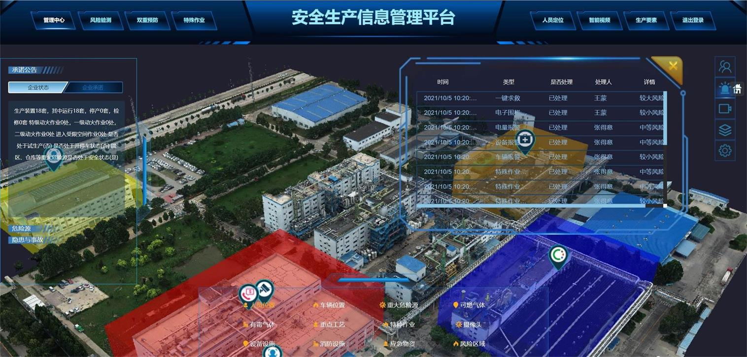 高效構建“可防可控”的閉環安全管理體系,以生產安全防控管理為核心目標,應用位置物聯技術、AI視頻行為分析、工業互聯網、安全及平臺技術,打造以“安全生產全流程智能化管理”為中心,融合重大危險源監測預警、企業安全風險分區管理、人員在崗在位管理和企業生產全流程管理于一體的安全生產信息化系統,助力企業構建可知、可視、可溯、可控的五位一體安全防控體系,有效管控風險、防范事故發生,保障生產作業安全,提升企業經營管理能力。